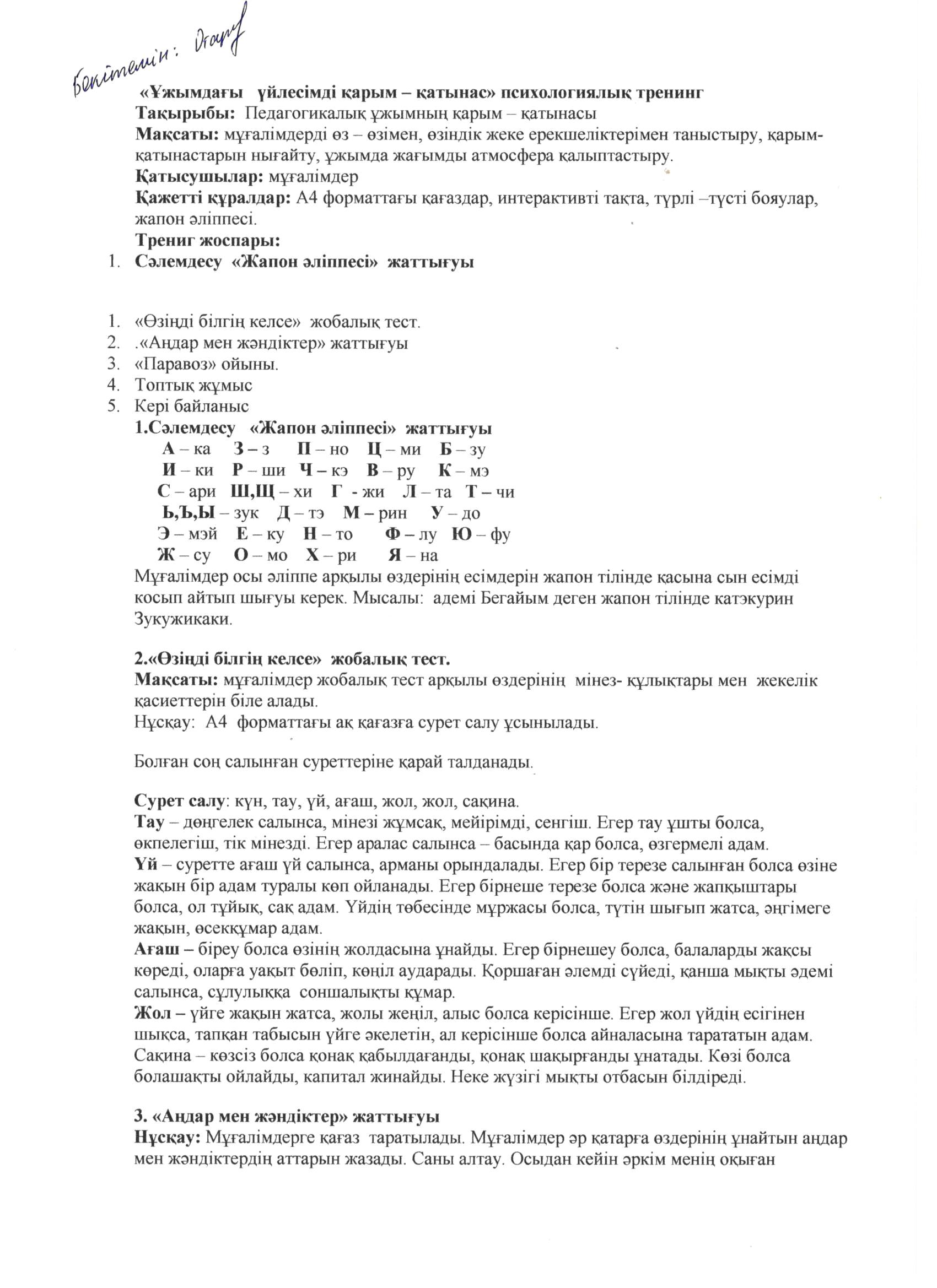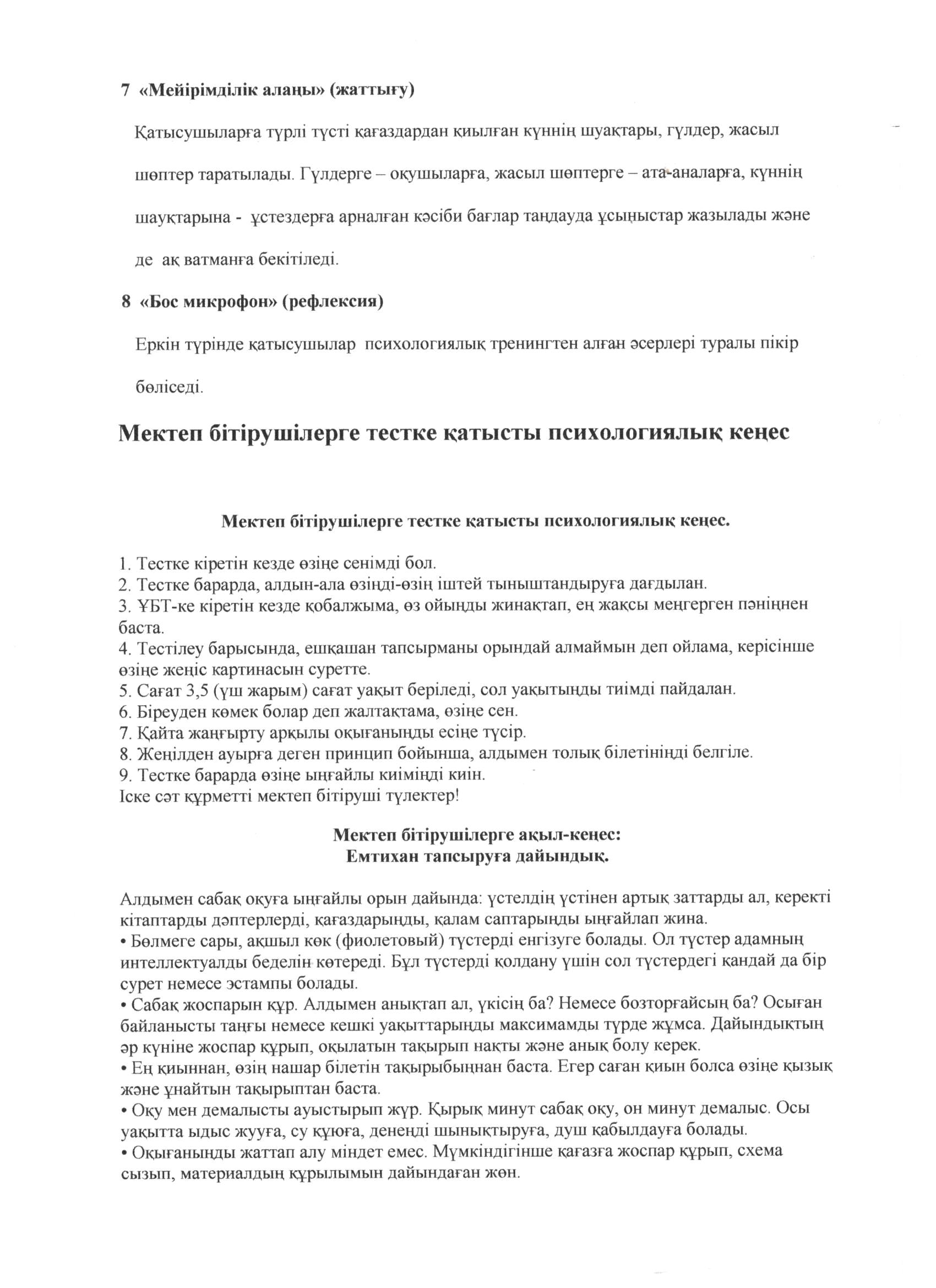 | 23 | Психологиялық тренинг ҰБТ | DOCX |