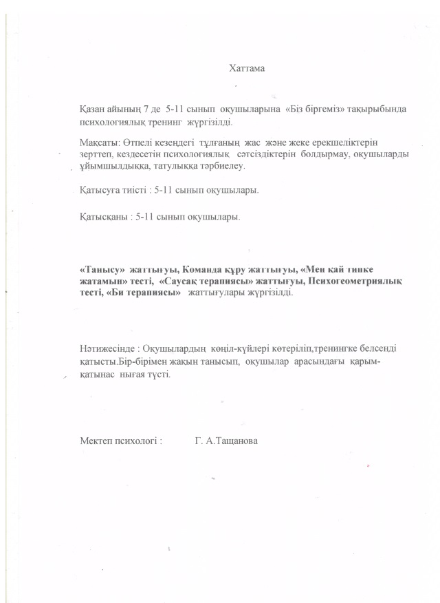 | 1 | Біз біргеміз - берік іргеміз оқушыларға арналған психологиялық тренинг | DOCX |