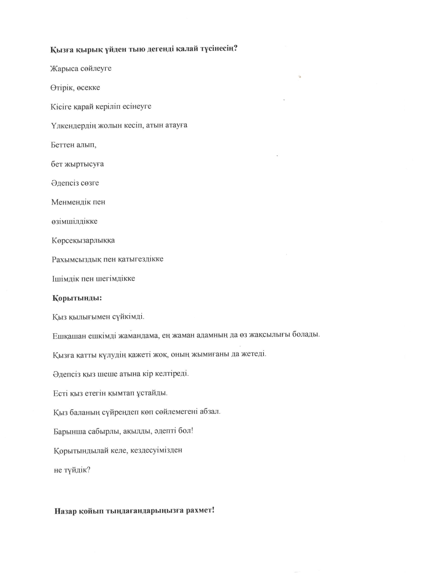 | 9 | Баяндама Қыз баланың бой жетуі | DOCX |