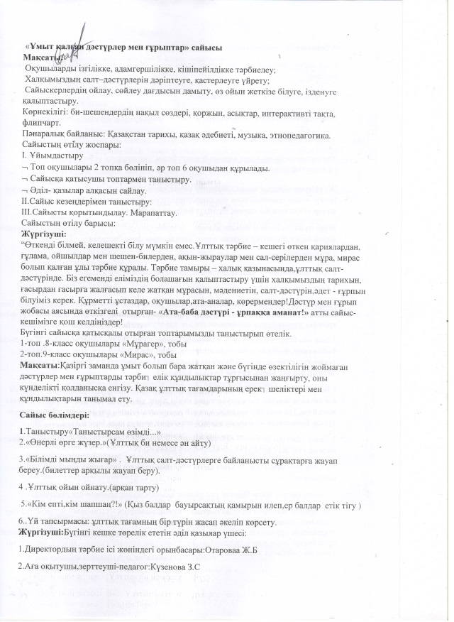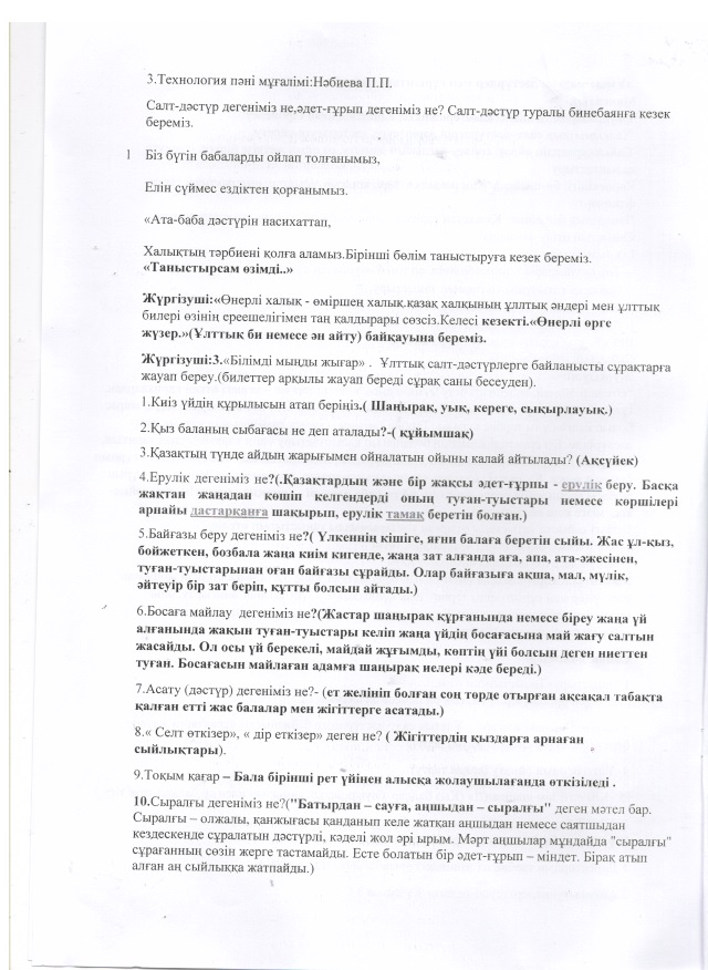 Ата баба дәстүрі ұрпаққа аманат А.Ерпанова