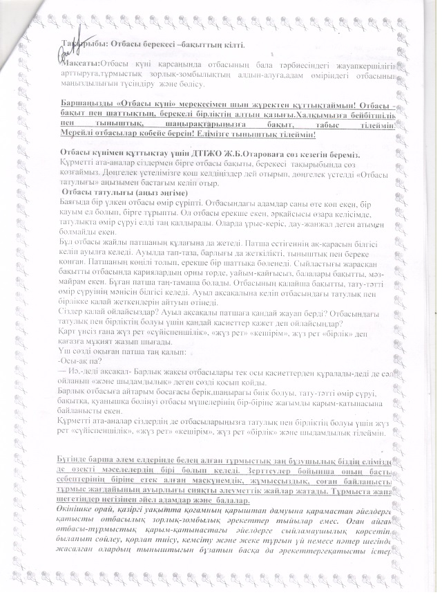 Отбасы берекесі бақыттың кілті Г.Тащанова