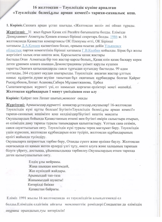 Тәуелсіздік белесі ұлы арман кемесі