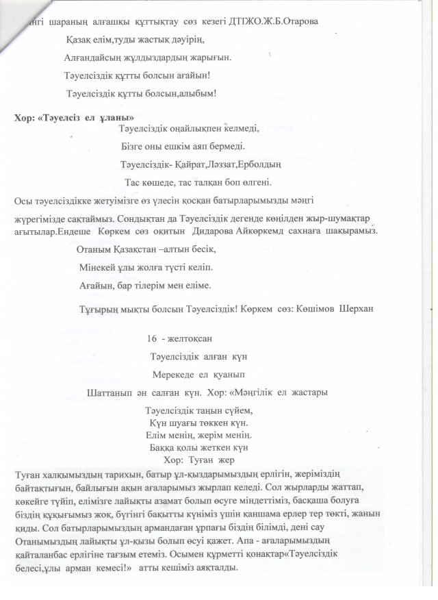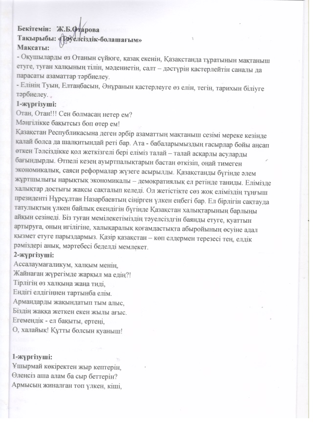 Тәуелсіз елдің ұрпақтары Ж.Жиғанбаева