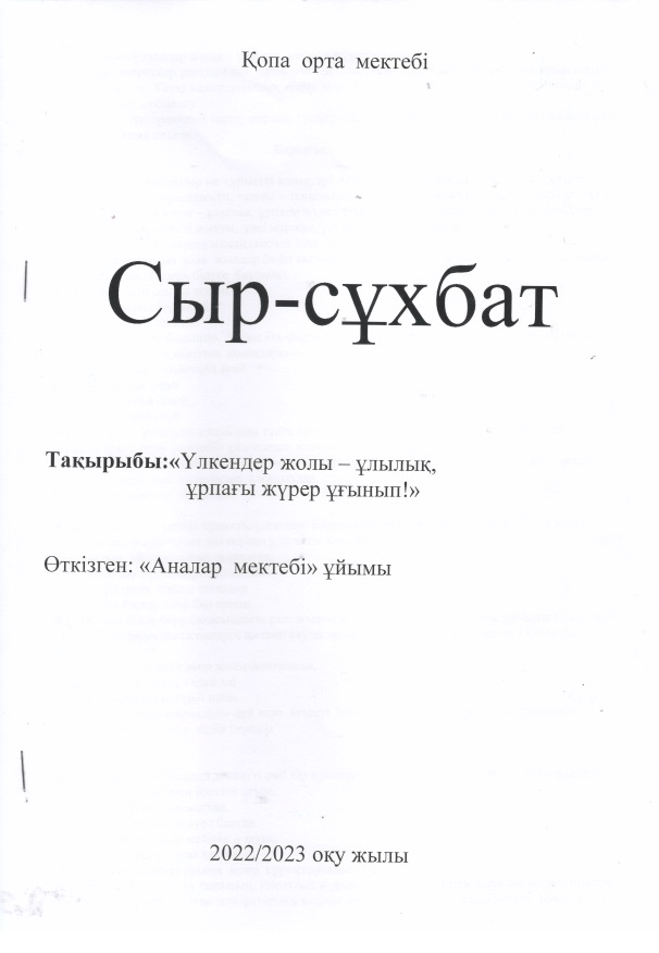 Үлкендер жолы ұлылық,ұрпағы жүрер ұғынып З.Күзенова