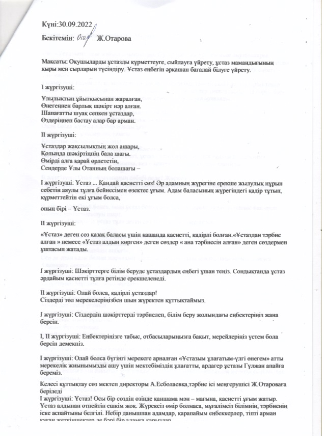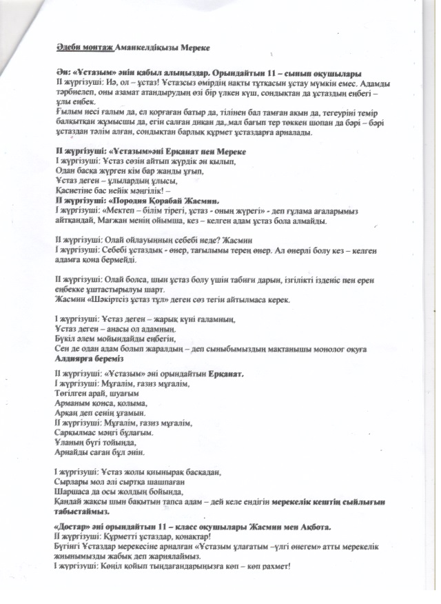 Ұстазым,ұалағатым үлгі өнегем