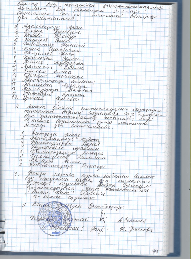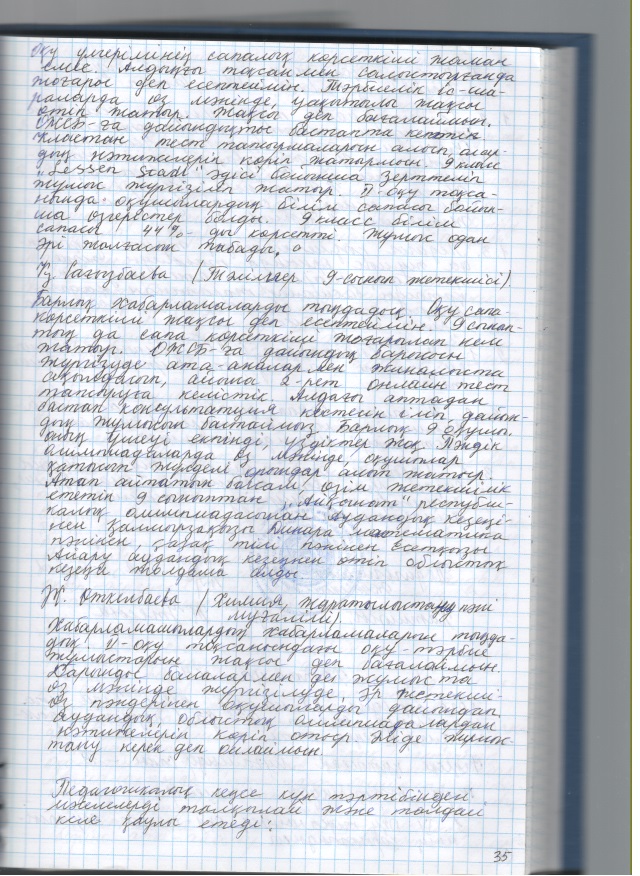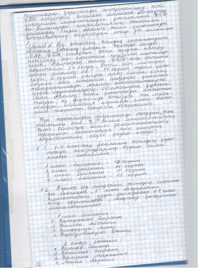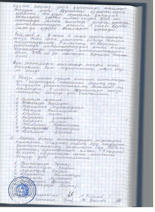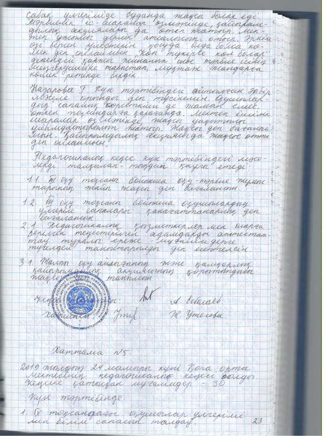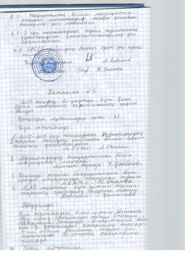 2019 жылғы кеңестердің педагогикалық хаттамалары