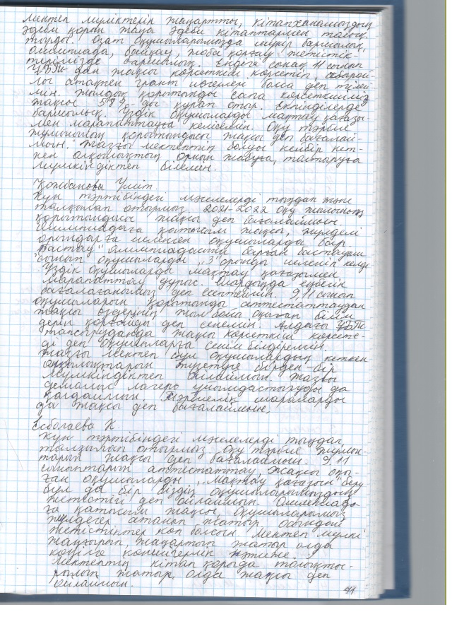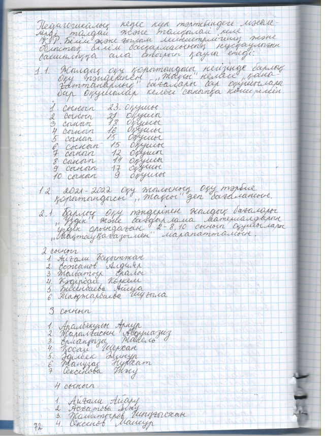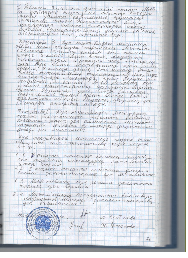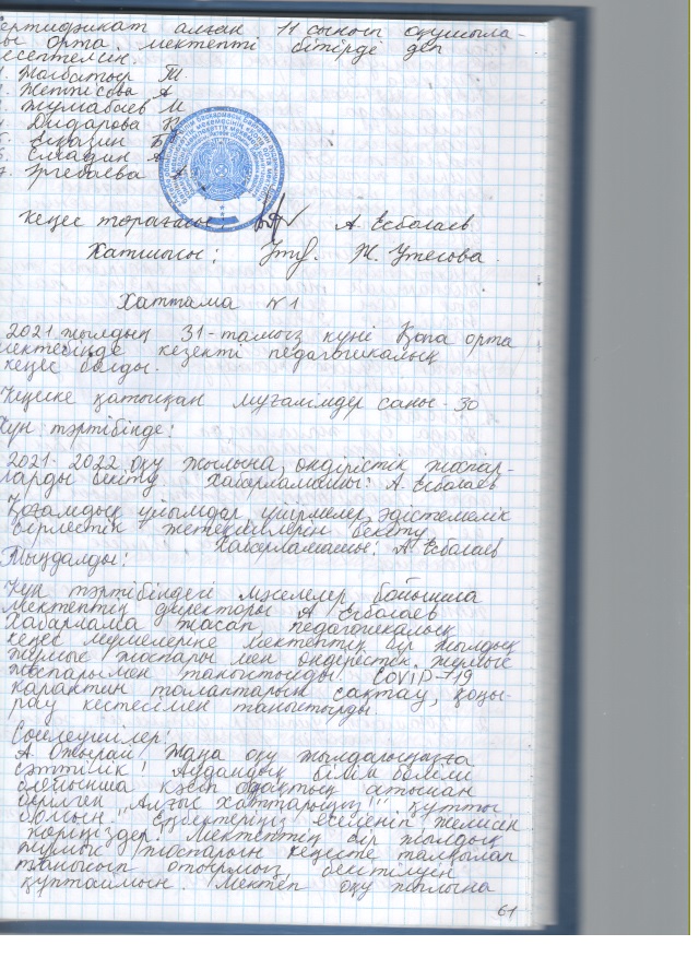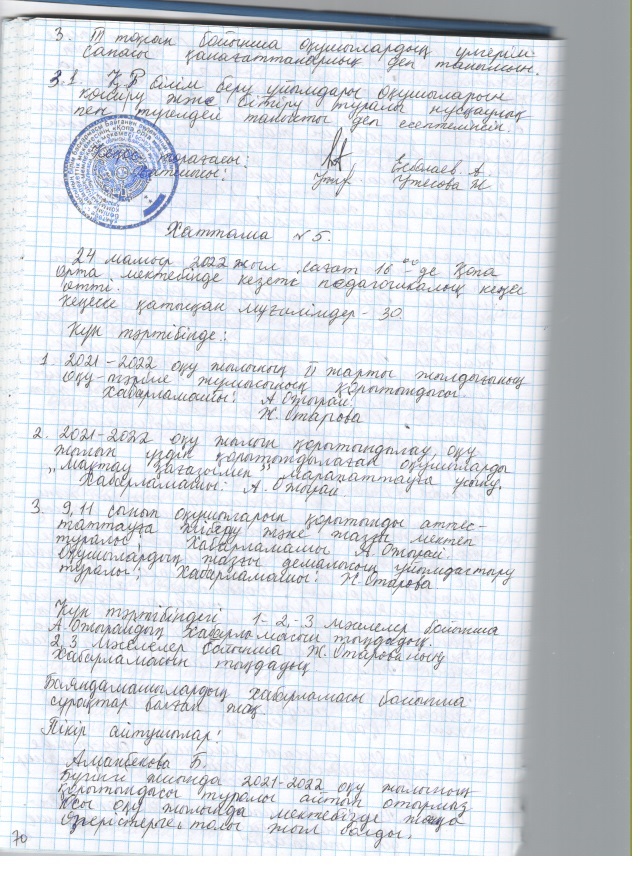 2021 жылғы кеңестердің педагогикалық хаттамалары