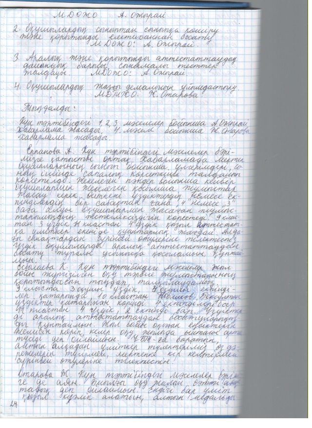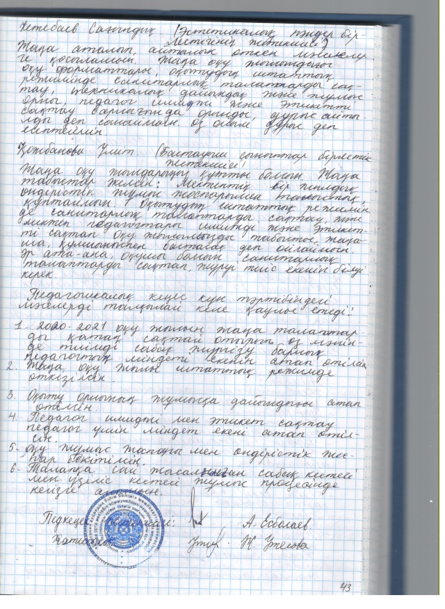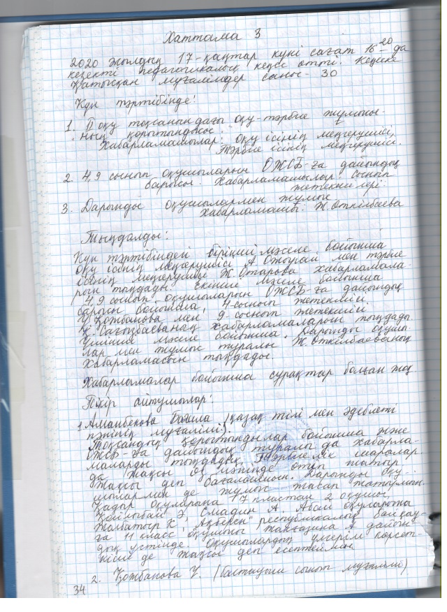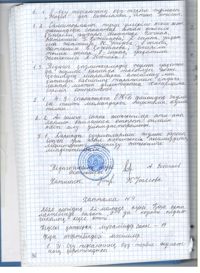 2020 жылғы кеңестердің педагогикалық хаттамалары