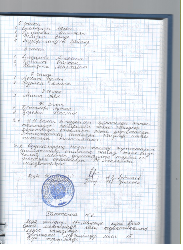 2022 жылғы кеңестердің педагогикалық хаттамалары