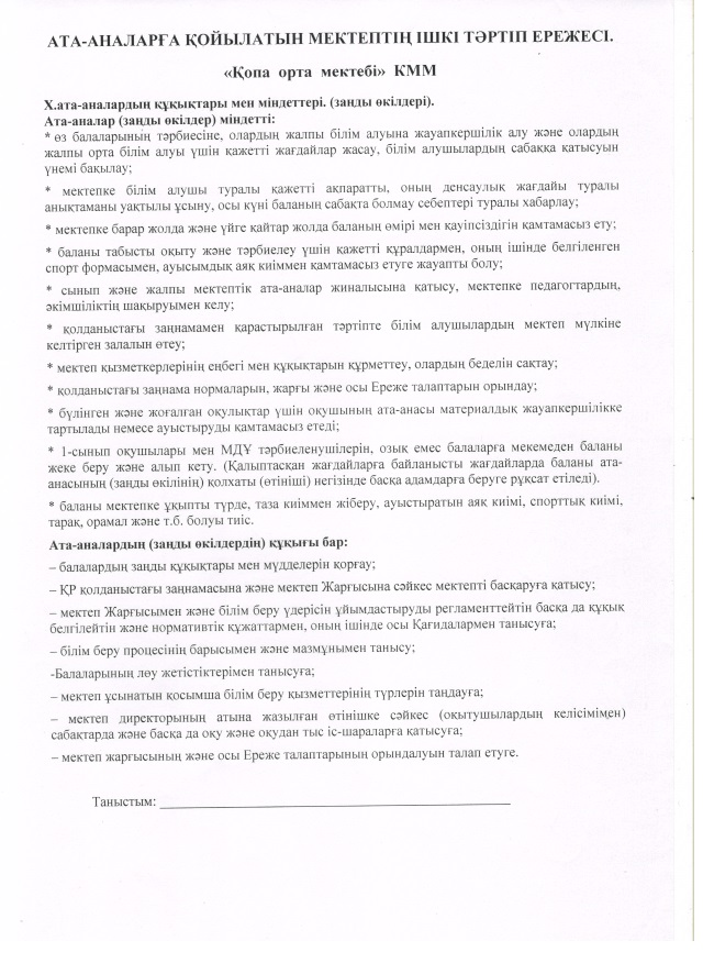 Мектептің ішкі тәртіп ережесі